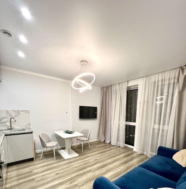 - большая кухня-гостиная 17.1 метров с раскладывающимся диваном, большой телевизор -плазма, Smart-tv, кондиционер;