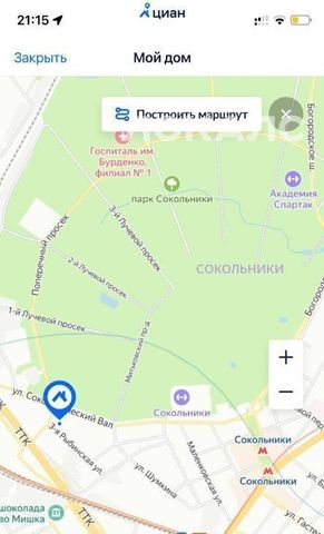 * парк Сокольники через дорогу 2 мин, видно из окна квартиры