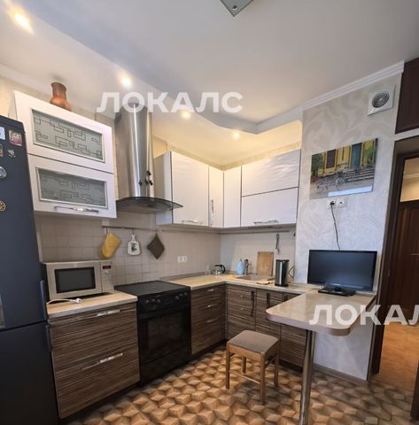 Оснащена современной мебелью и техникой для комфортного проживания: встроенный кухонный гарнитур под единой столешницей, электрическая плита, духовой шкаф, вытяжка, микроволновая печь, холодильник, стиральная машина-автомат, диван, места для хранения одежды- шкаф купе- зеркальный.