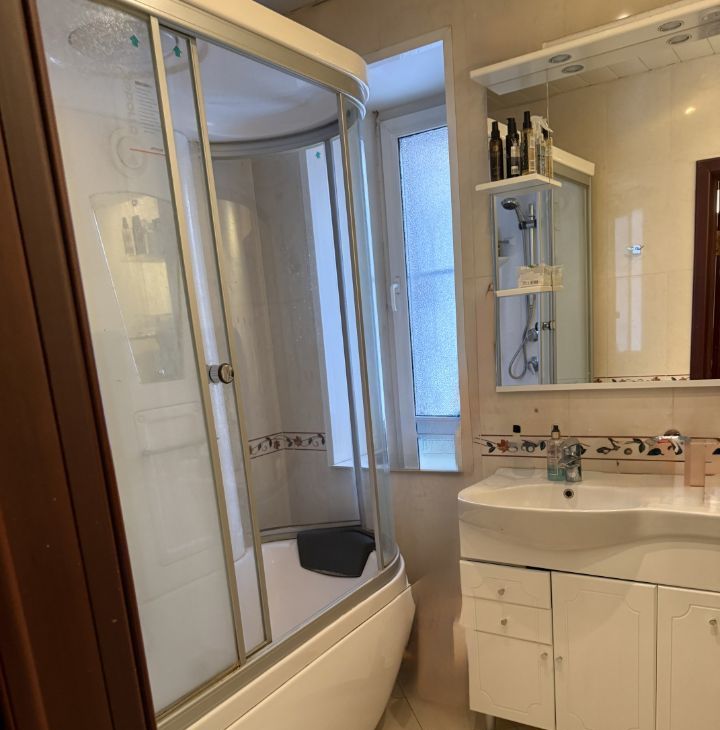 В квартире хорошая планировка , отдельные изолированные комнаты . В одной комнате спальный гарнитур , во второй комнате раздвижной диван , стенка , большой шкаф , два кресла , журнальный стол , кондиционер . Кухня обустроенная всей бытовой техникой и мебелью ,микроволновая печь , духовой шкаф ,варочная панель , большой холодильник , стиральная машина . Широкие подоконники , застекленная большая лоджия .Санузел раздельный , большая ванная комната с окном и душевой кабиной . Вход в подъезд с двух сторон дома , также заезд на автомобиле на парковочное место , с двух сторон дома с 4-й Самотечного переулка и Никоновского переулка .В подьезде круглосуточный консьерж , видеонаблюдение . Дом монолитный .