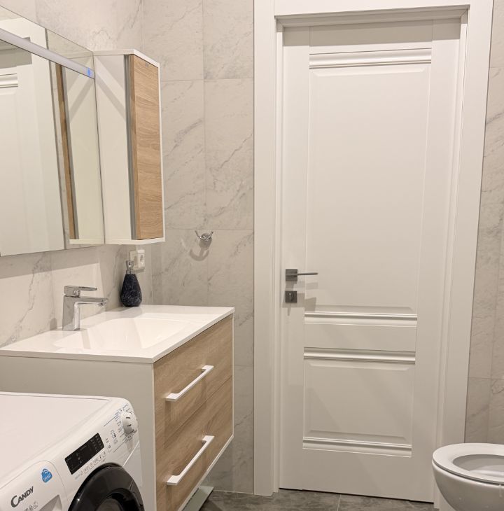 Гардеробная и балкон в спальне. Из техники: холодильник, посудомоечная машина, стиральная/сушильная машина, телевизор, робот пылесос.