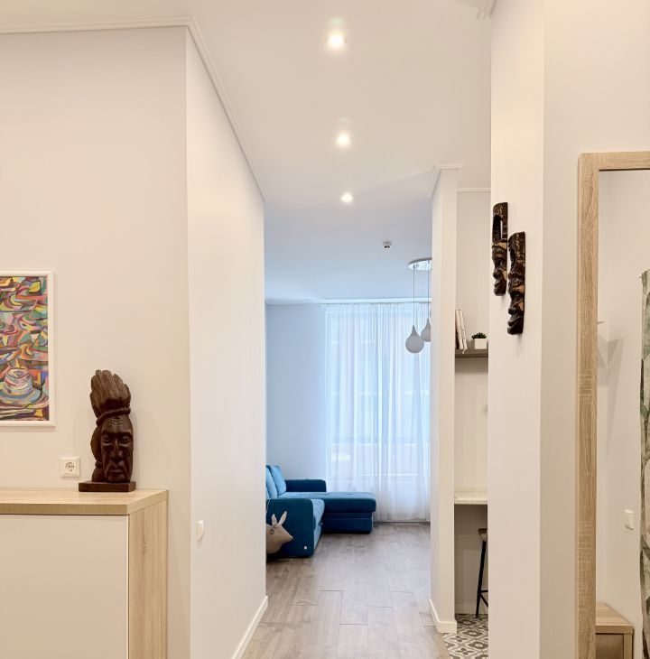 Сдаться уютная 2-комнатная квартира с новым ремонтом: площадь 60 кв. м, кухня 10 кв. м, высокие потолки, панорамные окна, которые выходят в зеленый, тихий двор. Элегантное лобби, консьерж, охрана, закрытая дворовая территория с детской площадкой и зоной для фитнеса.