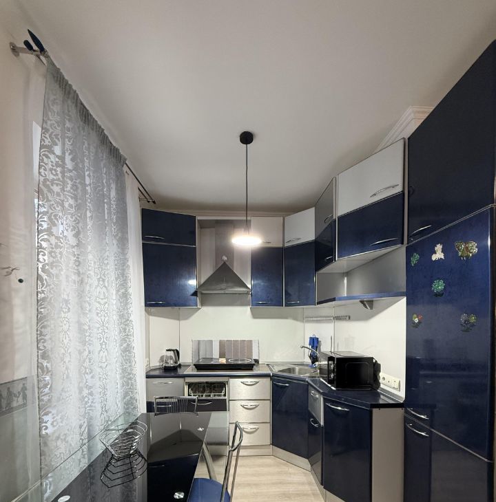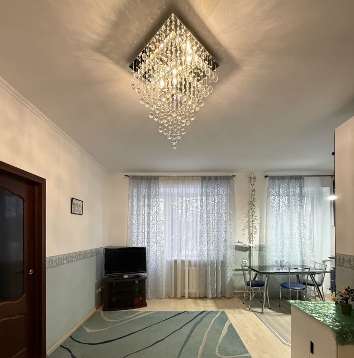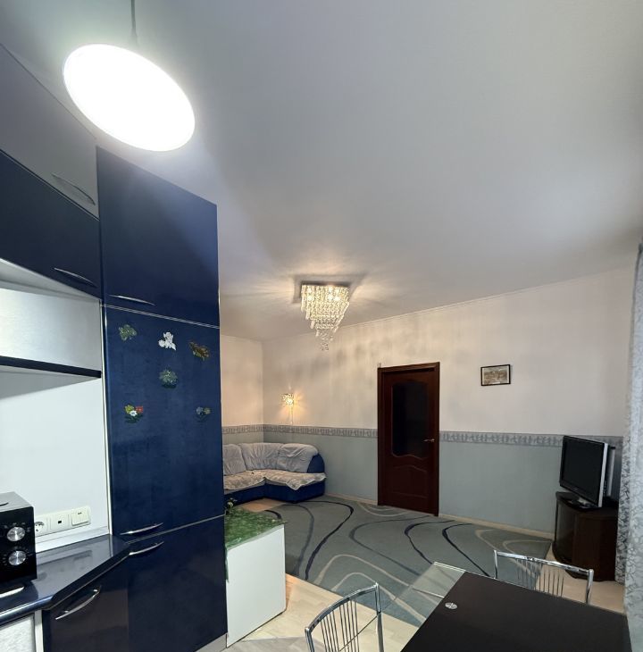 Квартира с евроремонтом, что обеспечивает современный и стильный интерьер. Высота потолков составляет 2.77 метра, что создает ощущение простора. В квартире есть вся необходимая мебель, как на кухне, так и в комнате, а также полный комплект бытовой техники: холодильник, посудомоечная и стиральная машины, телевизор. Совмещенный санузел оборудован ванной. Окна выходят во двор, поэтому в квартире тихо и комфортно. Также имеется балкон для вашего удобства.