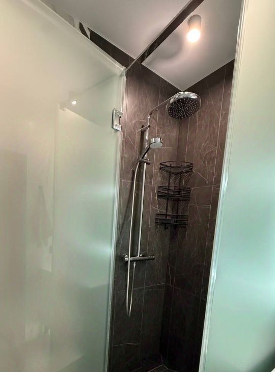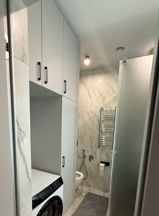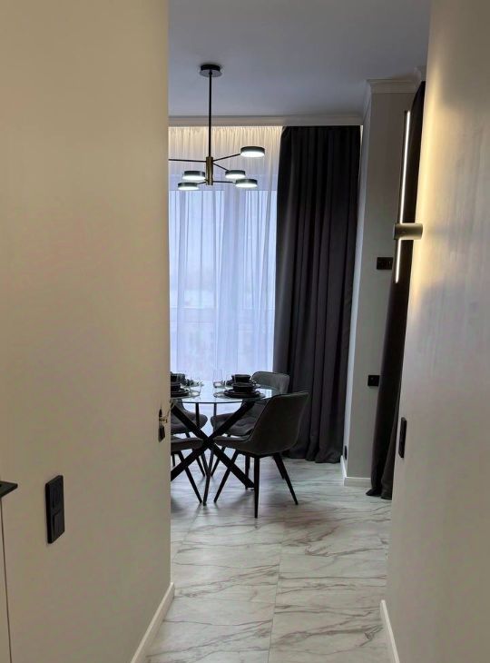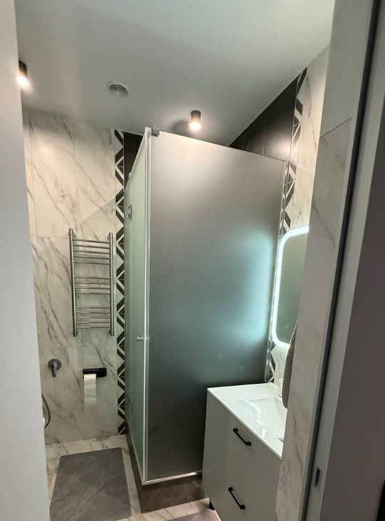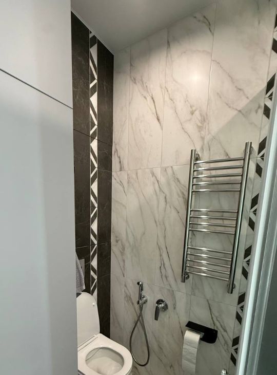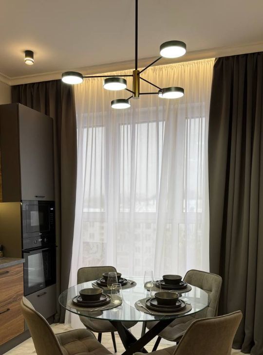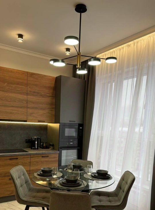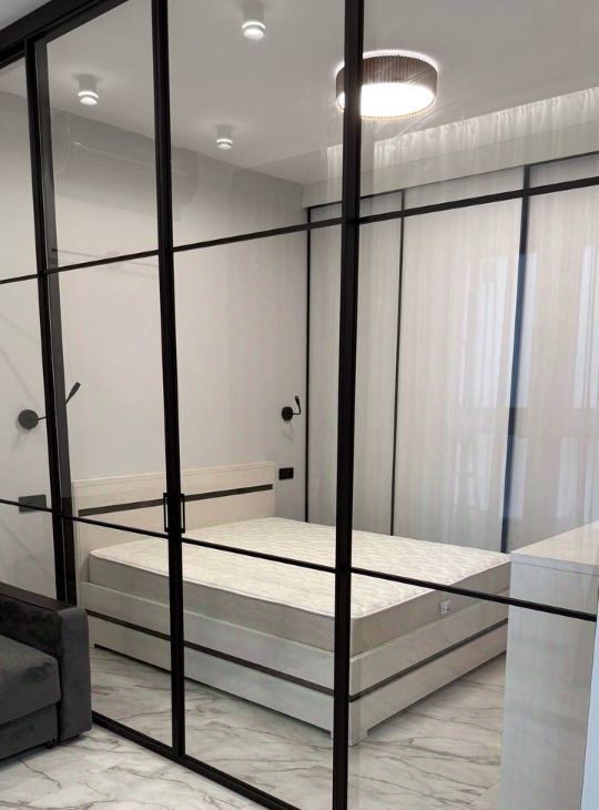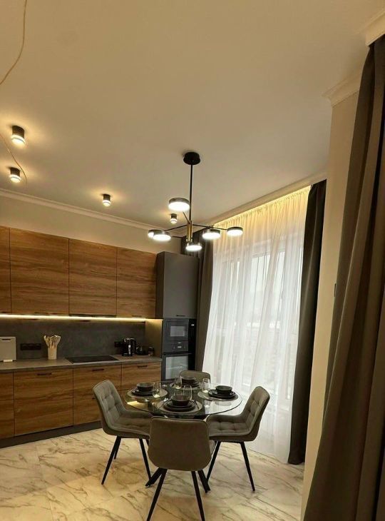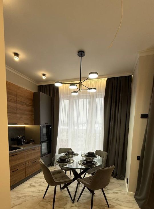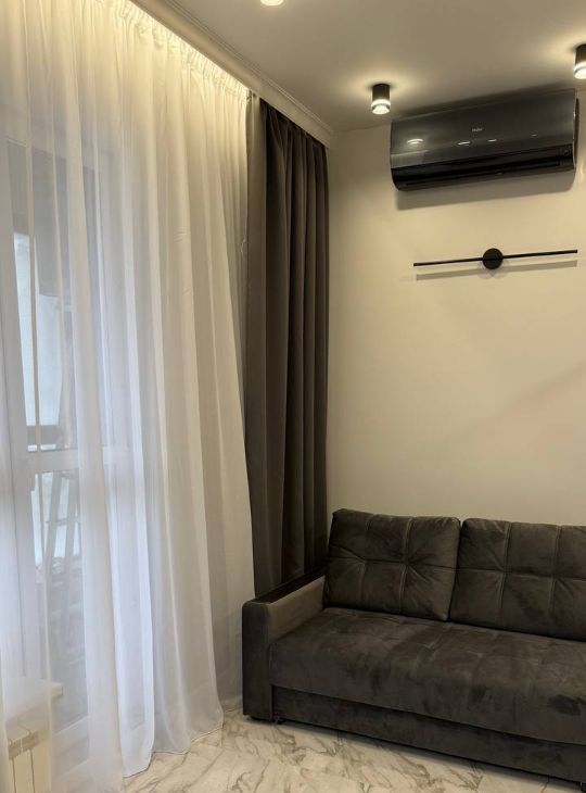 В квартире выполнен дизайнерский ремонт, создающий атмосферу комфорта и стиля. В ней есть все необходимое для комфортной жизни: кондиционер, холодильник, посудомоечная и стиральная машины, а также телевизор. Мебель расположена на кухне и в комнате, что позволяет сразу заселиться и жить без хлопот. В ванной комнате установлена душевая кабина.