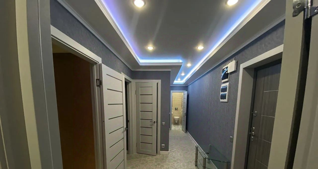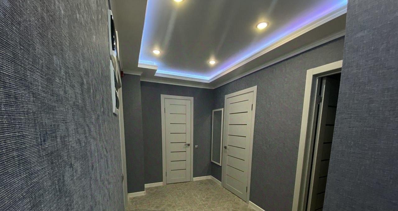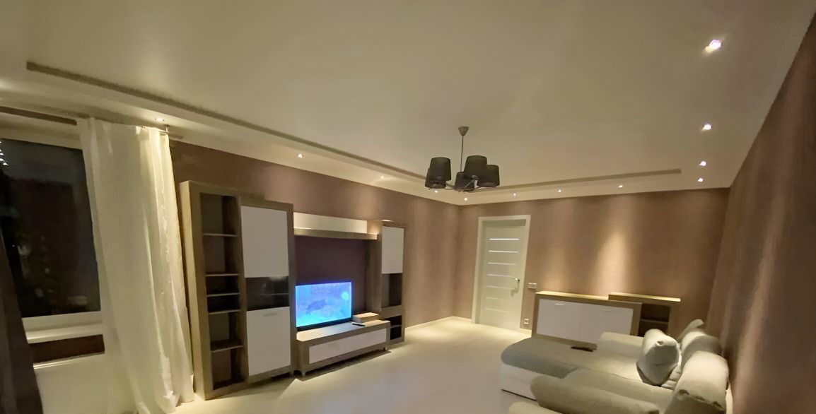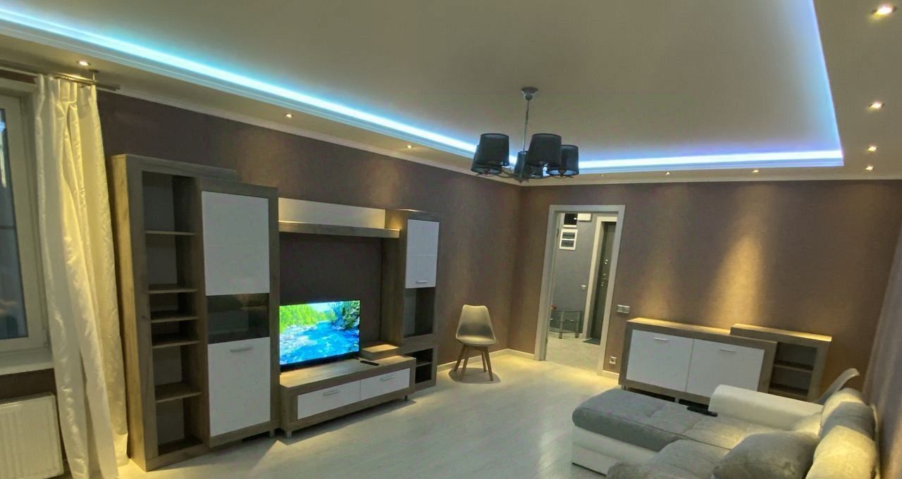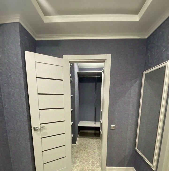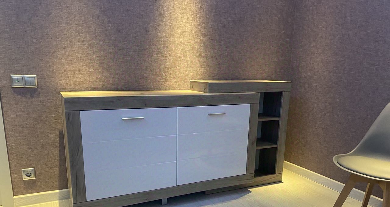 Квартира укомплектованная всей необходимой для комфортного проживания современной мебелью и техникой. В квартире устроена хозяйственная комната с стиральной машинкой. В прихожей есть гардеробная комната.