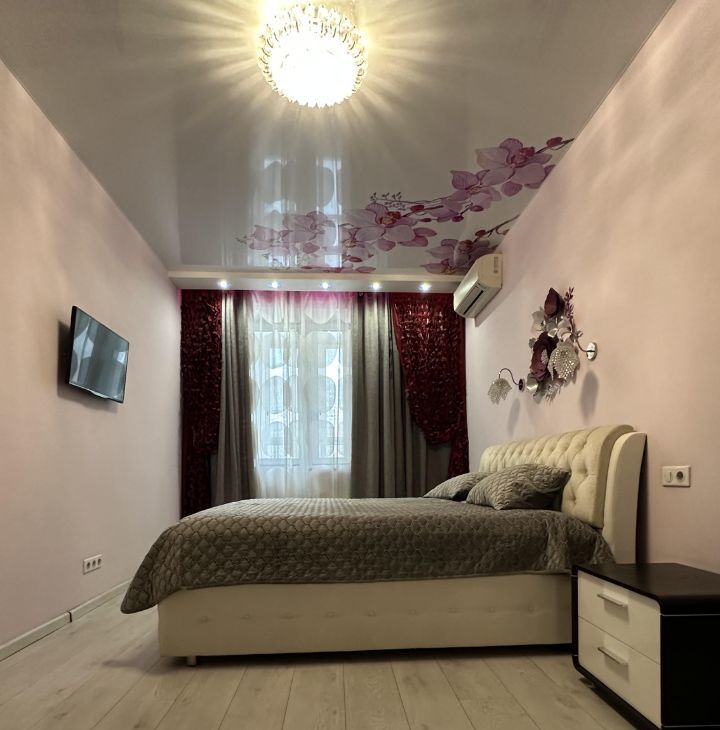 В квартире есть всё необходимое для комфортного проживания: кондиционер, холодильник, телевизор и стиральная машина.