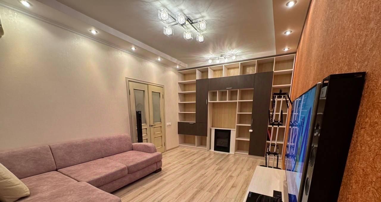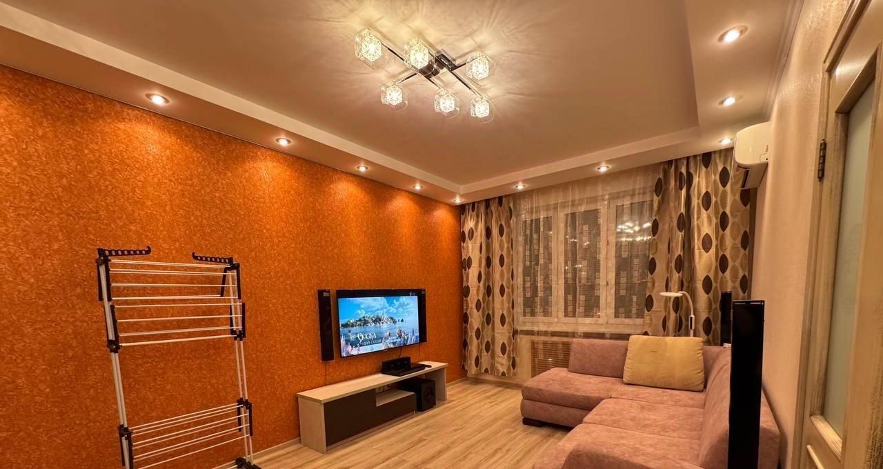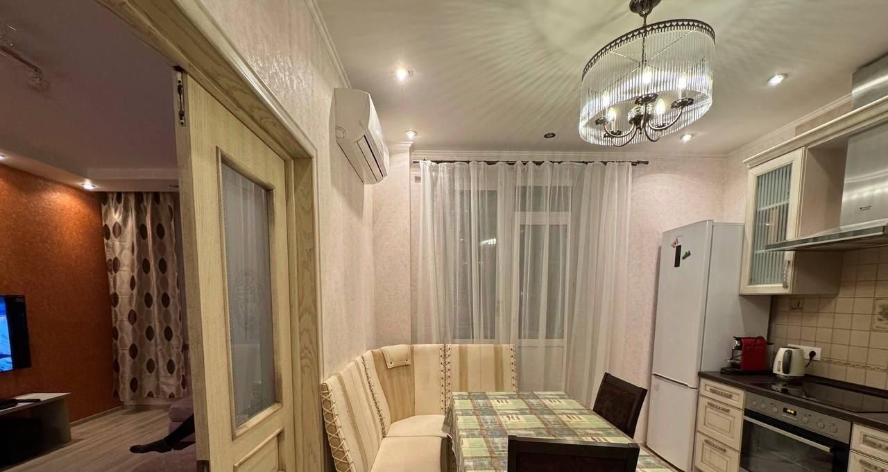 В квартире есть всё необходимое для комфортного проживания: стильная мебель на кухне и в комнате, а также современная техника, включая кондиционер, холодильник, посудомоечную и стиральную машины, телевизор. Ванная комната оборудована ванной, что позволяет расслабиться после долгого дня. Из квартиры есть выход на балкон, где можно наслаждаться свежим воздухом.