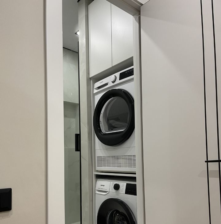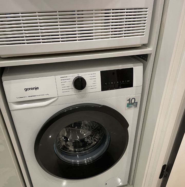 Квартира укомплектована новой техникой для комфортного проживания: мощная мультисплитсистема на 2 комнаты (спальня и кухня) с защитой от продувания, посудомойка, духовка, микроволновка, система фильтрации питьевой воды, вместительный холодильник, в санузле установлена стиральная и сушильная машина, гигиенический душ.