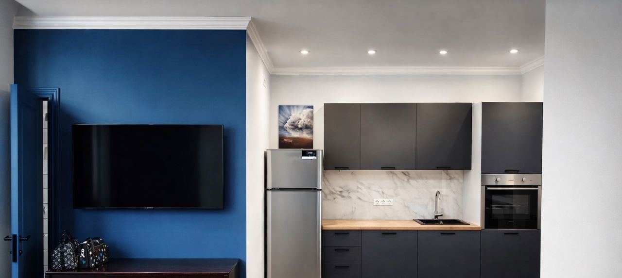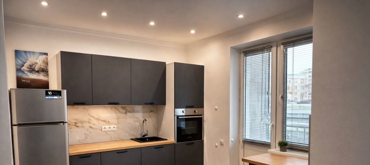 Квартира полностью мебелирована и укомплектована всей необходимой техникой: кондиционер, холодильник, духовка, варочная панель на острове в окна, телевизор и стиральная машина. Дизайнерский ремонт создает уютную атмосферу, а грамотная планировка позволяет эффективно использовать пространство. Санузел совмещенный, есть ванна. Для удобства жильцов предусмотрена застекленная лоджия.
