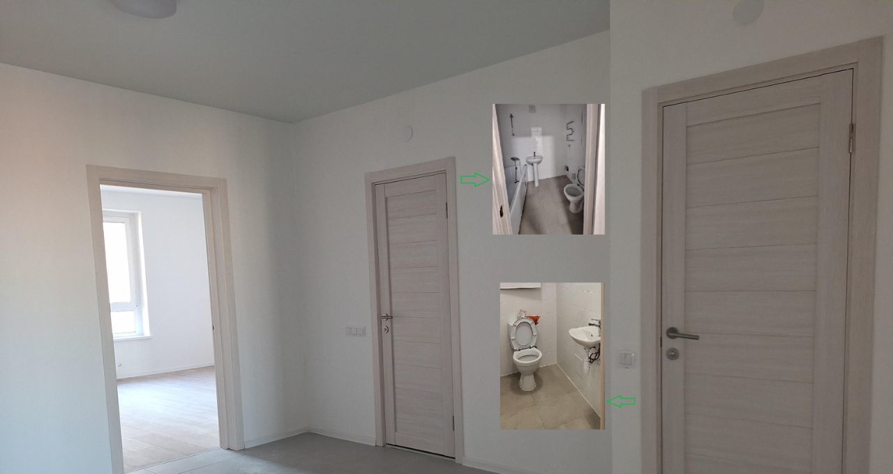 Улучшенная отделка от застройщика: ламинат, плитка в прихожей и мокрых зонах, обои под покраску, сантехника установлена, на кухне фартук - плитка, есть электрическая плита.