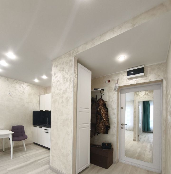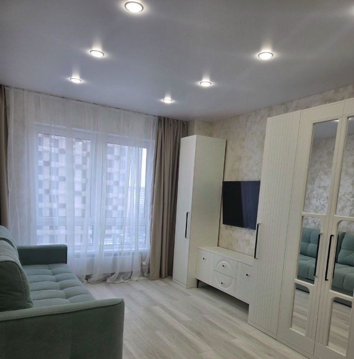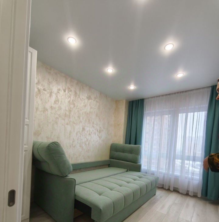 Квартира после дизайнерского ремонта, идеально чистая, никто не жил. Планировка Евро-2 — отдельная спальня с большой кроватью и шкафом, просторная кухня-гостиная (18 м²) с встроенной техникой: индукционная плита, посудомойка, холодильник, микроволновка и проточный фильтр питьевой воды В гостиной — комфортный, стильный диван, телевизор Smart TV и кондиционер.