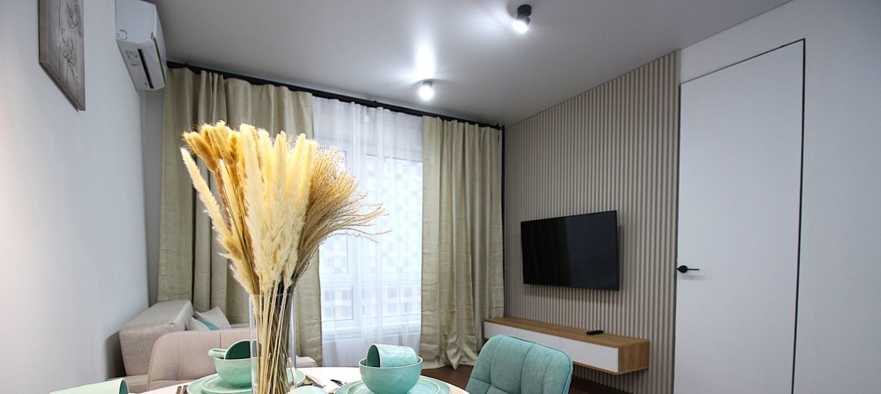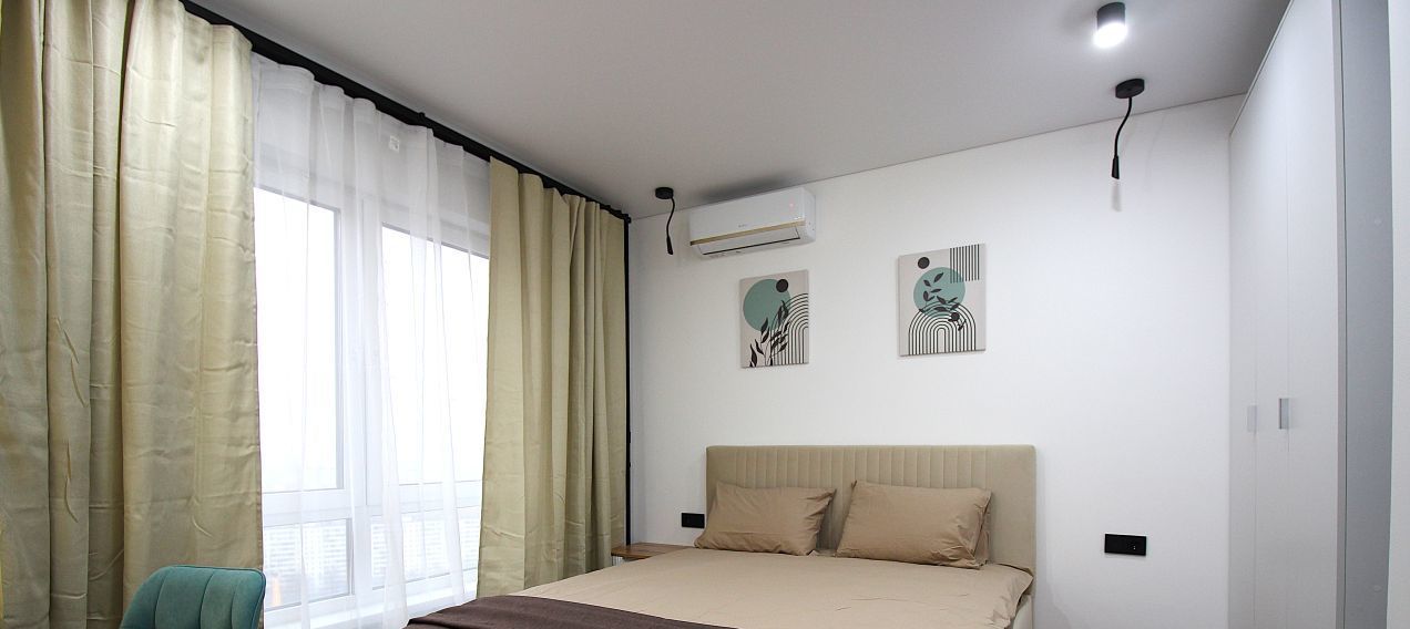 Уютная квартира 2-евро с новым дизайнерским ремонтом и всей необходимой техникой и мебелью. Удобная кровать с мягким изголовьем и ортопедическим матрасом, продуманные места для хранения, функциональная гардеробная, кондиционер в каждой комнате, телевизор, совмещенный санузел.