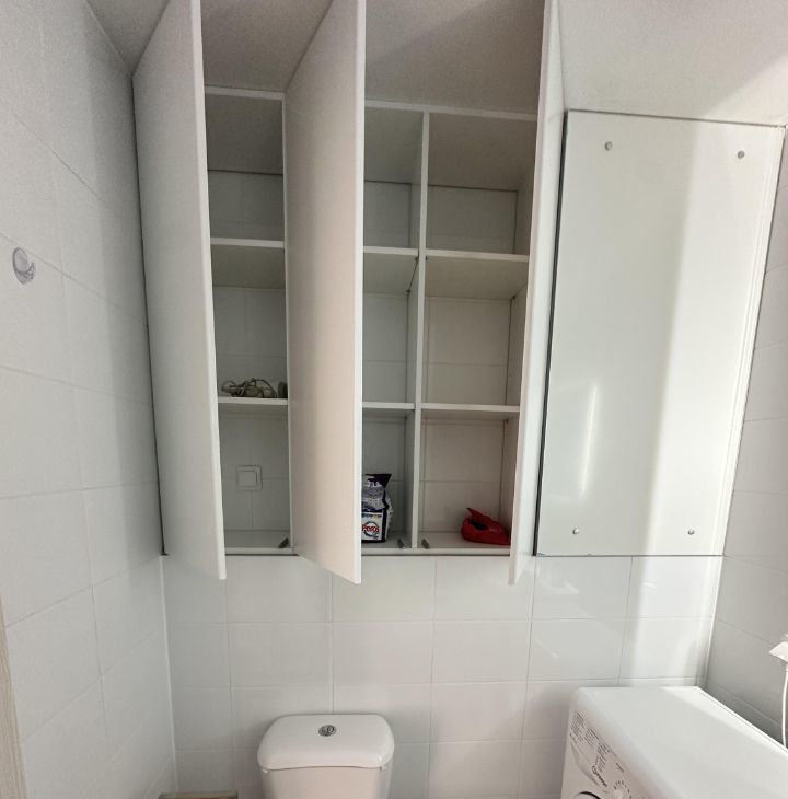 В квартире предусмотрены вместительные встроенные шкафы для хранения вещей: один шкаф в коридоре, один шкаф в ванной и один шкаф в спальне.