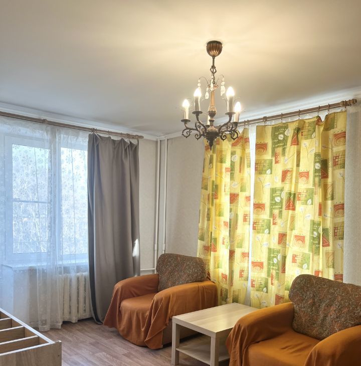 Компактная удобная планировка: изолированные светлые комнаты: 18 и 9 квм, кухня 6 квм, совмещенный санузел, открытый балкон. В квартире есть вся необходимая мебель, в маленькой комнате установлены шкаф и торшер. Окна выходят в зеленый двор. Чистый подъезд, домофон. Лифта нет