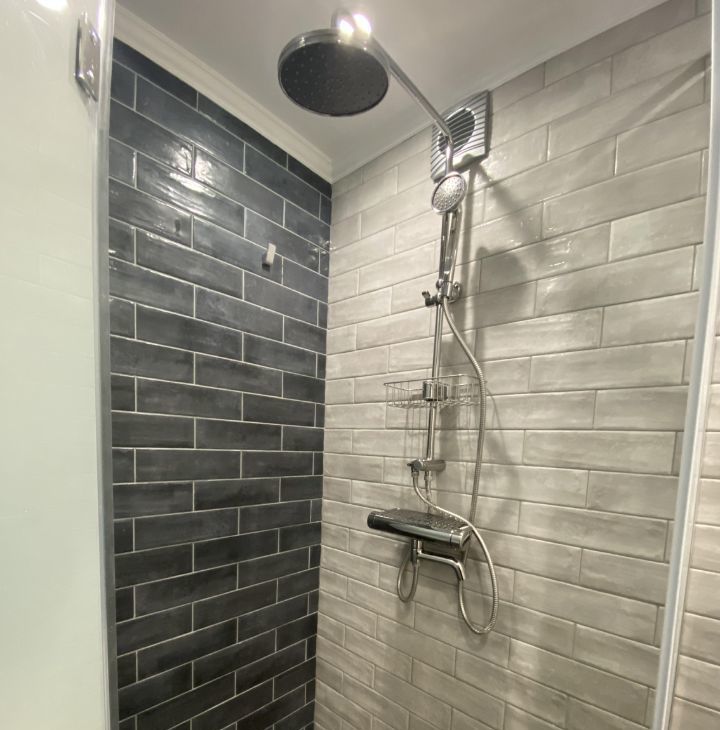Санузел совмещенный, душевая кабина, гигиенический душ, стиральная машина.