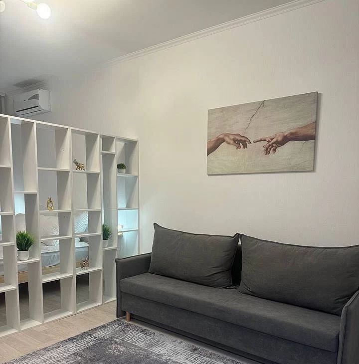 Встроенная мебель на кухне и в комнате создаёт комфорт и функциональность. Санузел совмещённый, оборудован ванной.