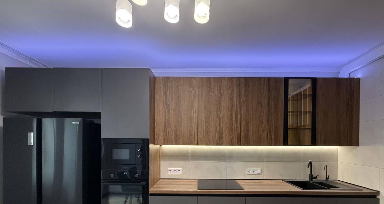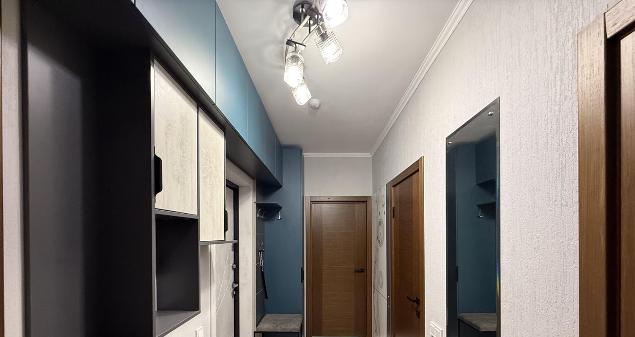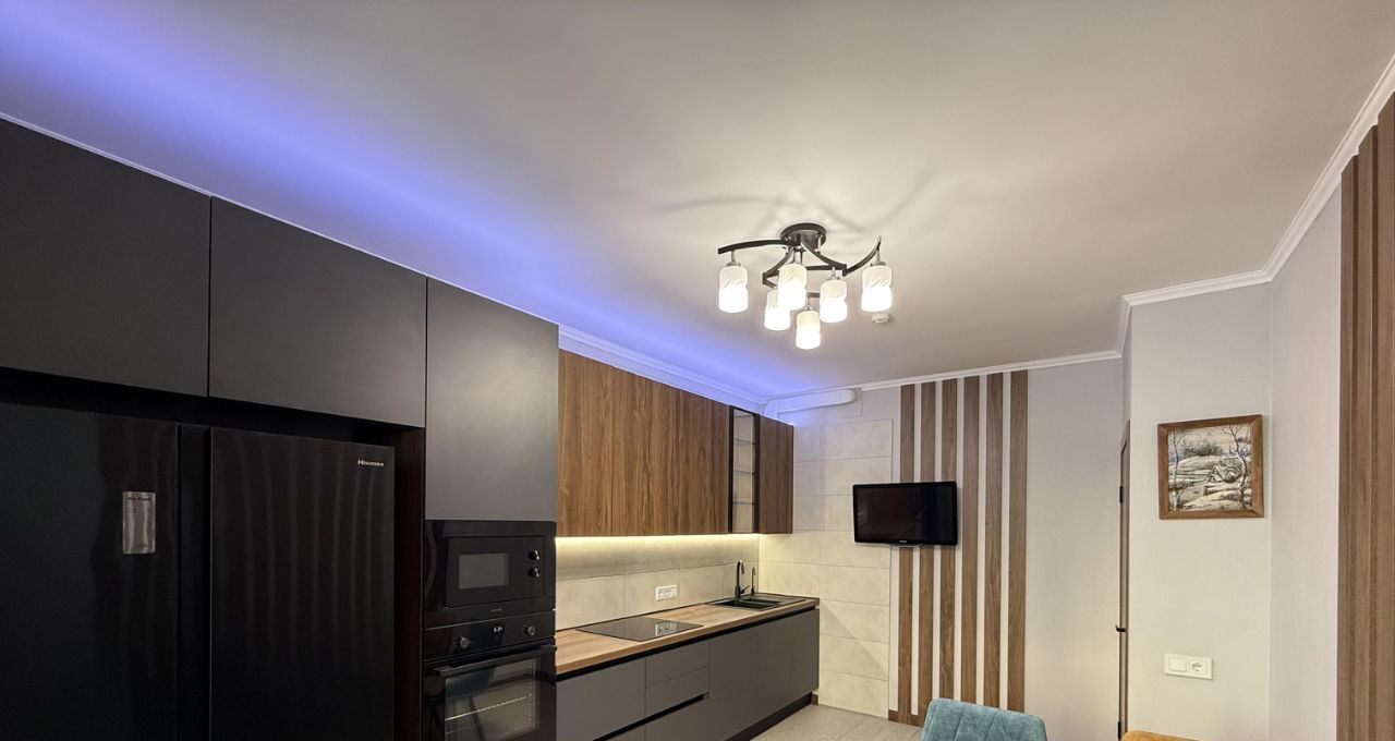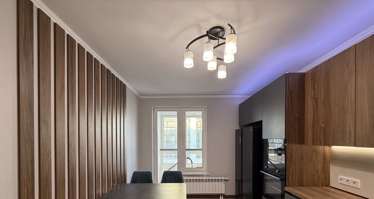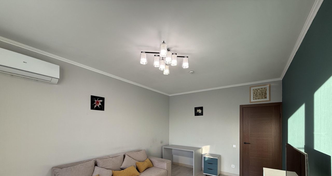 В квартире сделан дизайнерский ремонт, который подчеркивает современный стиль и комфорт. Обстановка включает мебель на кухне и в комнатах. Кухня оснащена всей необходимой техникой: кондиционер, холодильник, посудомоечная и стиральная машины. В квартире два совмещенных санузла, один с ванной, другой с душевой кабиной для вашего удобства.