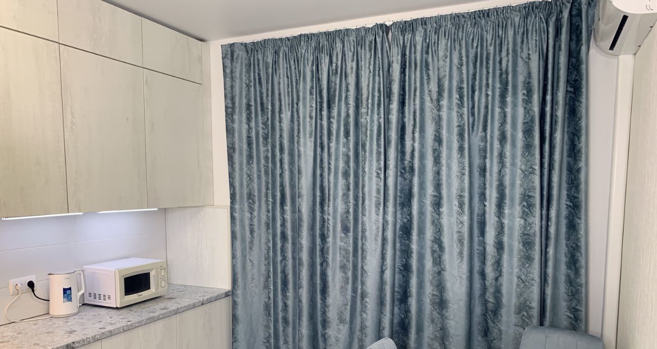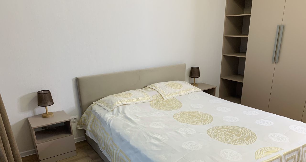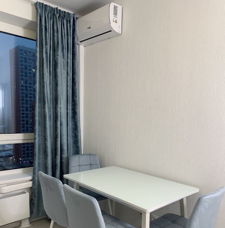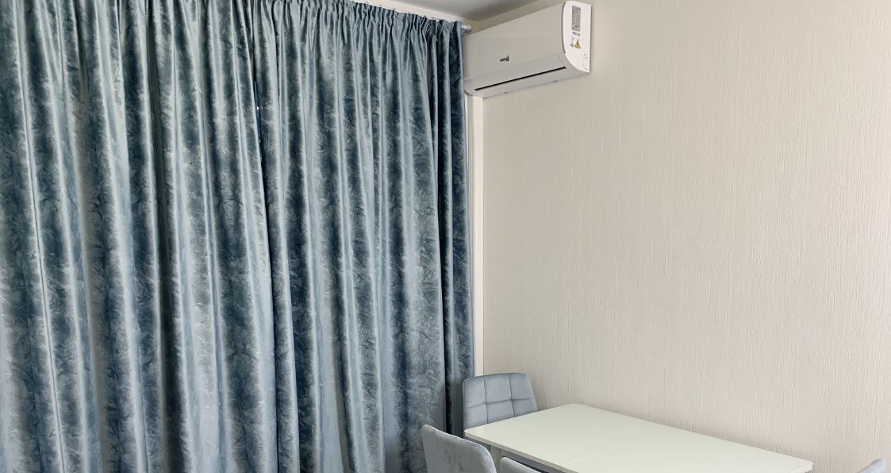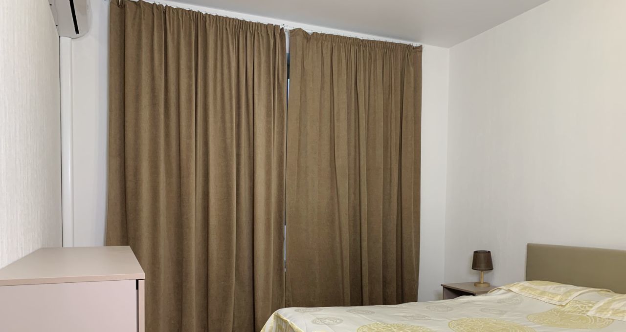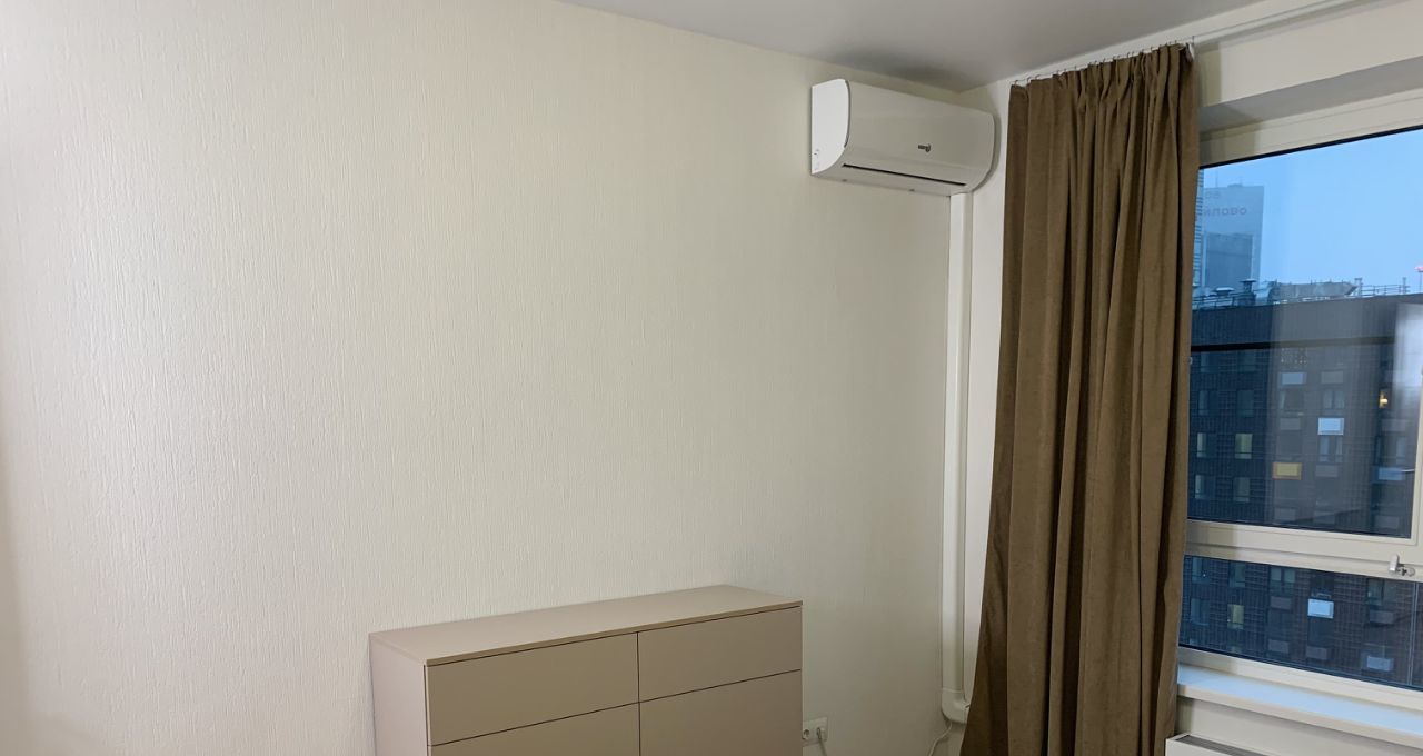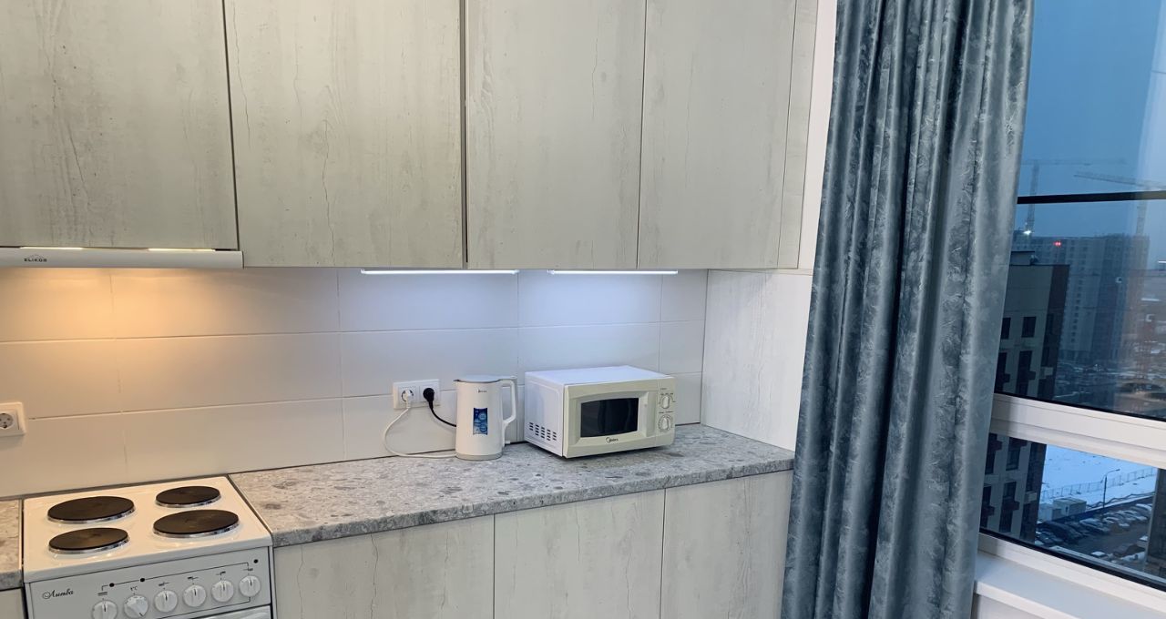 В квартире есть все необходимое для комфортной жизни: кухонный гарнитур, холодильник, микроволновая печь, стиральная машина, два кондиционера, вытяжка, чайник, электроплита с духовкой, обеденная группа, диван, встроенный шкаф при входе, большой гардеробный шкаф и шкаф в гостиной, рабочий стол с креслом, кровать с комодом и тумбами.