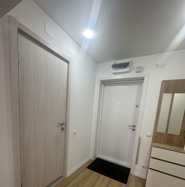 В квартире выполнен стильный евроремонт в светлых тонах. Комнаты обставлены необходимой мебелью- кроватью и удобными , раскладывающимися диванами.