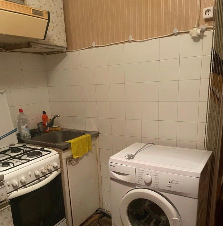 Квартира без ремонта. Есть холодильник и стиральная машина, мебель в комнате и на кухне.