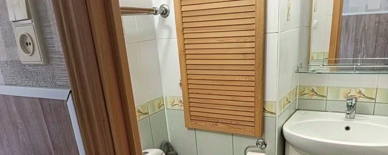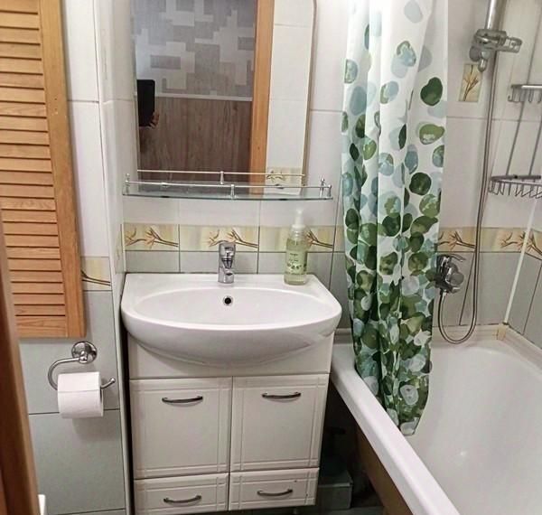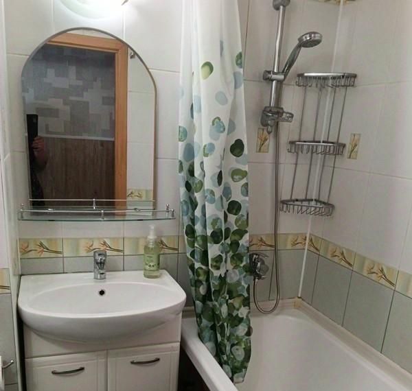 ~ санузел совмещённый, с ванной, в плитке до потолка ;