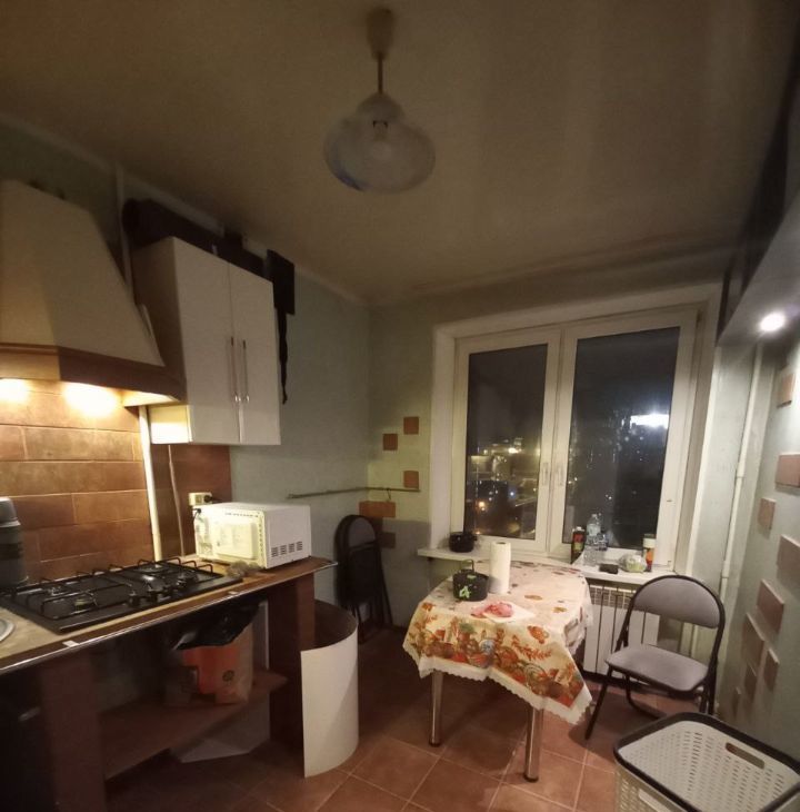 Полностью меблирована и оборудована бытовой техникой: 3 раскладных дивана, шкафы в комнатах, прихожей, кухонная мебель, телевизор, обеденный стол, журнальные столики, холодильник, стиральная машина, микроволновая печь, газовая варочная панель с вытяжкой, гладильная доска, утюг, сушилка для белья.