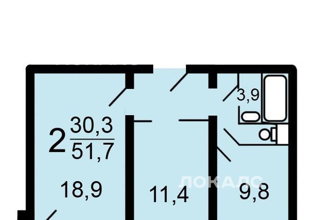 2-к кв. Москва Ангарская ул., 45К2 (52.0 м²)