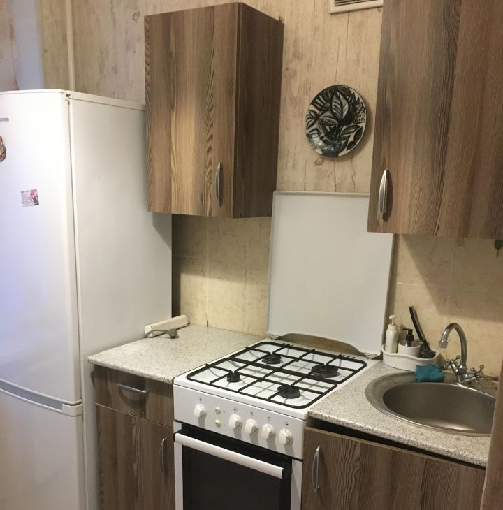 В квартире сделан косметический ремонт. Кухня площадью 6 кв. м есть необходимая мебель и техника, включая холодильник. В комнате также присутствует мебель. Ванная комната оснащена ванной и стиральной машиной.
