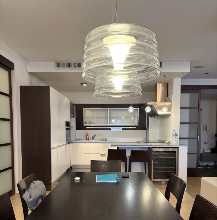 Светлая,просторная ,современная квартира в стиле минимализм. кухня-гостиная с обеденной зоной и зоной для отдыха с большим диваном для приема гостей и отдыха всей семьей теплыми вечерами. две спальни находятся в противоположных концах квартиры и разделены гостиной .У основной спальни есть свой сан узел,с джакузи,постирочной и гардеробной комнатами. Есть еще спальня для гостей или детская.,сан узел с душевой кабиной.В квартире установлен встроенный