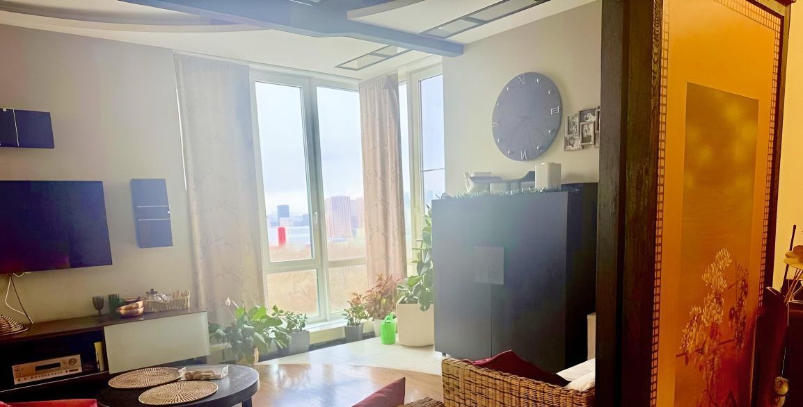 Представляю Вашему вниманию просторную 2-комнатная квартира с дизайнерским ремонтом, расположенная на 12-м этаже 35-этажного монолитно-кирпичного дома, построенного в 2003 году в Жк Алые Паруса . Общая площадь квартиры составляет 95 кв. м, из которых 12 кв. м отведены под кухню. Высокие потолки (3 метра) и большие окна, выходящие на строгинскую пойму , создают атмосферу уюта и простора.