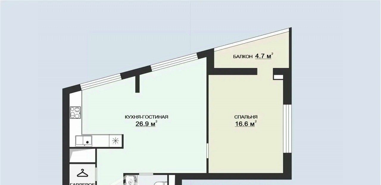 Площадь: 60 м², жилая 36 м², кухня 10 м².
