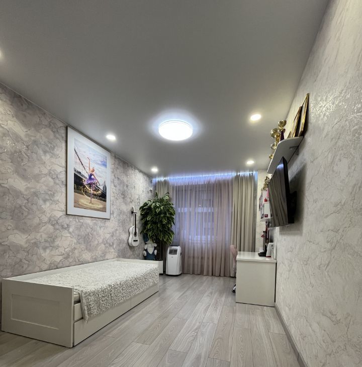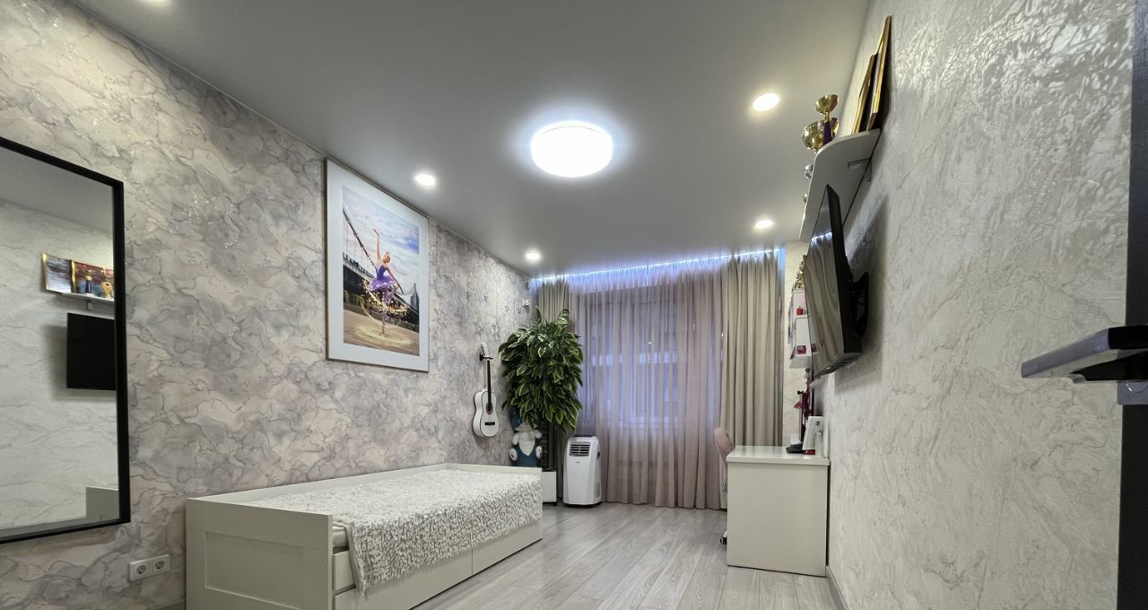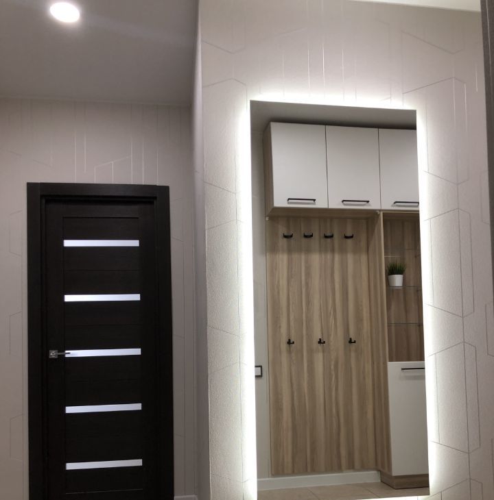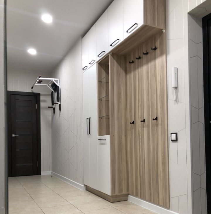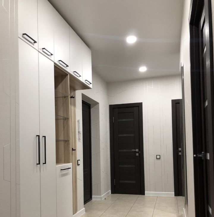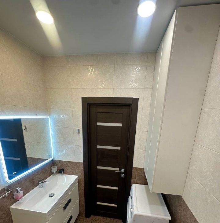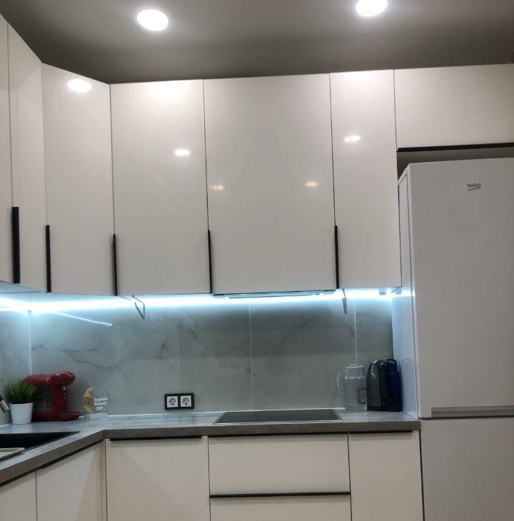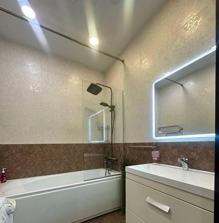В обеих комнатах встроенные шкафы-купе, на кухне - кухонная мебель с подсветкой рабочей зоны, стеклокерамическая варочная панель, вытяжка, 2 камерный холодильник высотой 2,1м, посудомоечная машина Indesit, микроволновая печь, кофе-машина. В ванной акриловая ванна 1,7м, стиральная машина.