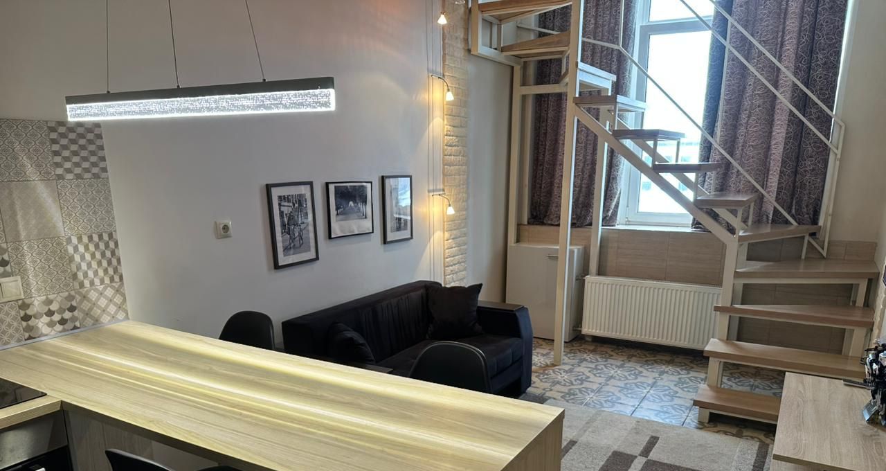Cдается двухэтажный лофт, кухня гостиная на первом этаже и спальня с гардеробной на втором, вся необходимая мебель, посудомойка, стиральная машина и прочая техника присутствует.