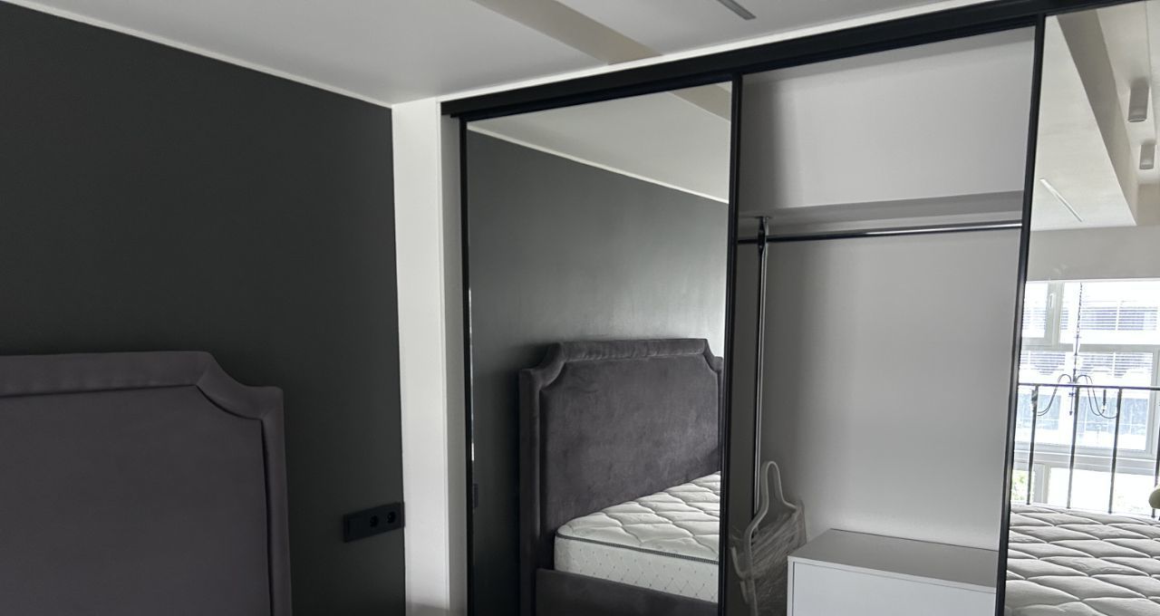 Раскладной диван, большая двуспальная кровать с хорошим матрасом. Очень вместительный встроенный шкаф-гардеробная.