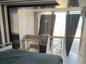 В квартире выполнен евроремонт, есть все необходимое для комфортного проживания. Планировка включает две комнаты : кухню - гостиную , спальню с просторной гардеробной комнатой , а также два санузла. Качественный ремонт, мебель и современная техника ;кондиционер, холодильник, посудомоечная , фильтры воды и стиральная машина ,телевизор. Окна выходят на улицу, что обеспечивает хорошую освещенность помещений.