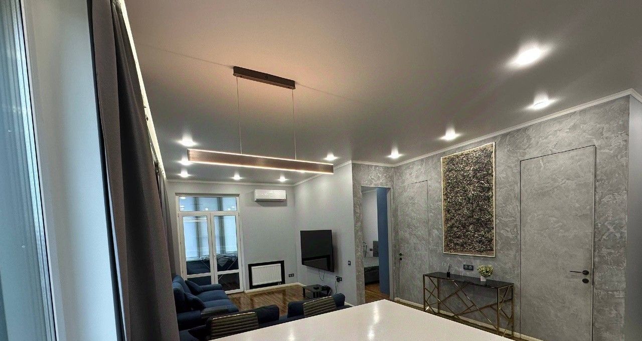 Интерьер выполнен в современном минималистичном стиле: спокойные оттенки, качественные материалы, продуманное освещение — квартира выглядит дорого и стильно.