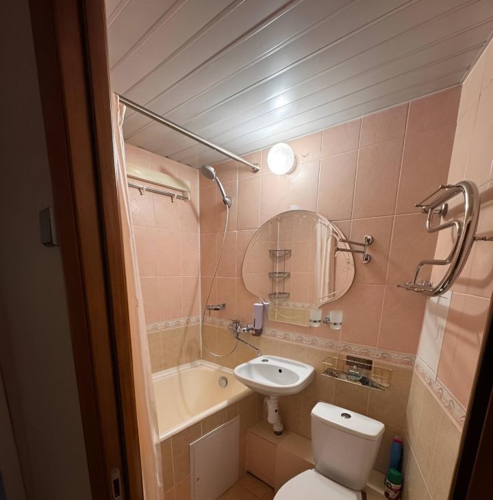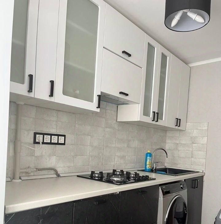 Квартира с евроремонтом, светлая и комфортная. Жилая площадь составляет 20 кв. м, кухня — 7 кв. м. Окна выходят на улицу, благодаря чему в комнатах всегда светло. В квартире есть все необходимое для комфортного проживания: кондиционер, холодильник, телевизор, стиральная машина. Мебель установлена на кухне и в комнате. Ванная комната оборудована ванной.