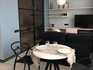 В квартире есть всё необходимое для комфортной жизни: кондиционер, холодильник, посудомоечная машина, телевизор и стиральная машина. Кухня и комната полностью меблированы, а в ванной комнате установлена душевая кабина. Планировка продумана до мелочей, поэтому можно использовать пространство максимально эффективно.