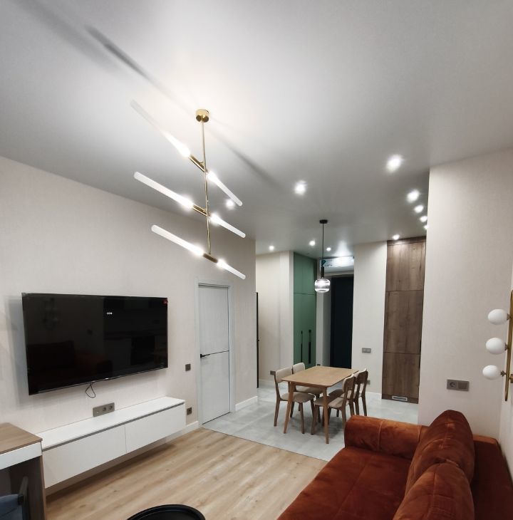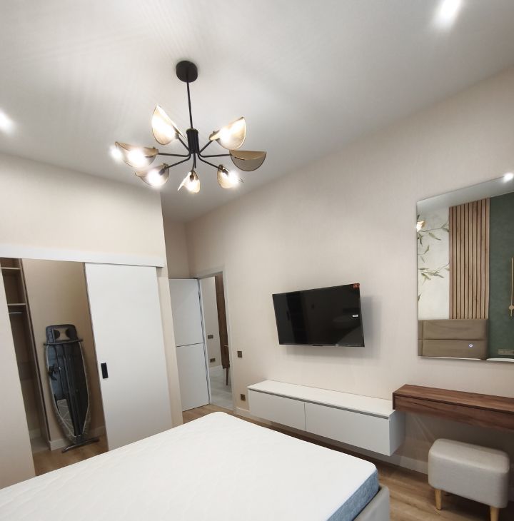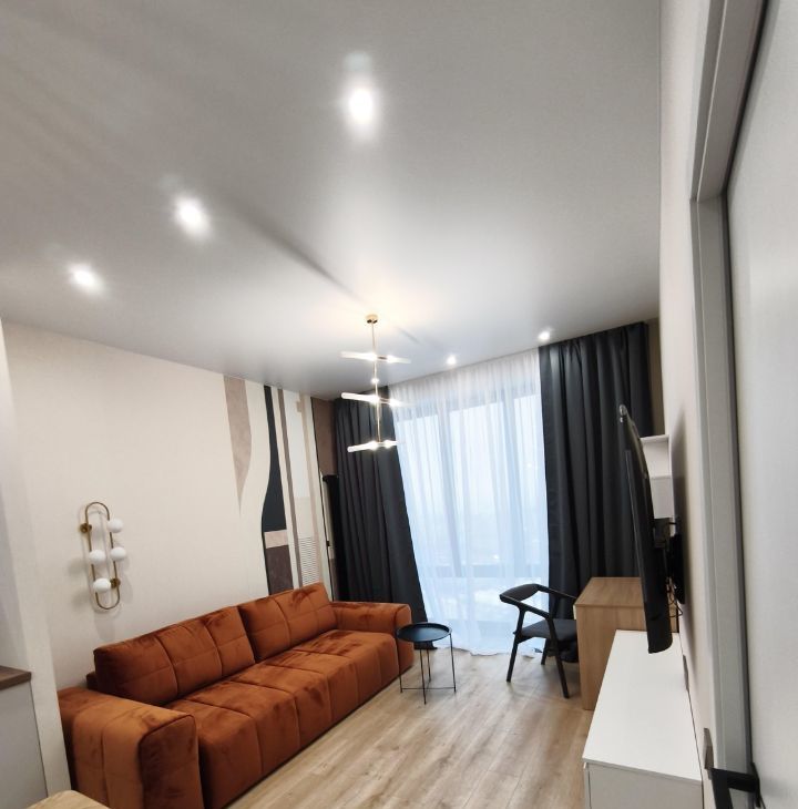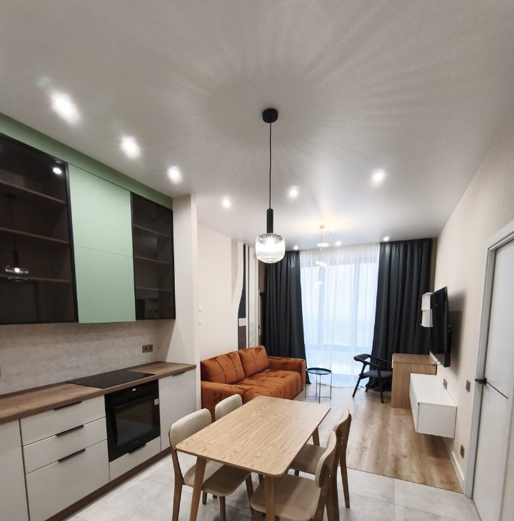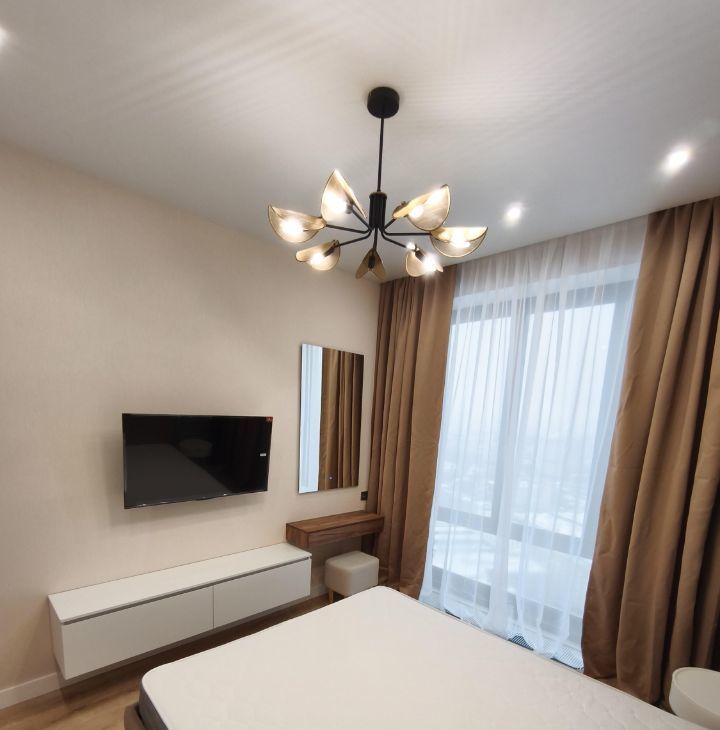 Планировка: спальня с гардеробной и кухня гостиная. Много мест для хранения. Окна в пол с панорамным видом! Огороженная территория, охрана, подземный паркинг. Отличная локация. Развитая инфраструктура района. Состав жильцов обсуждается дополнительно. Без вредных привычек, без животных. Коммунальные платежи включены. Отдельно вода, свет, интернет.