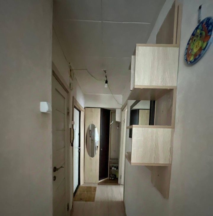 На полу везде ламинат на стенах обои. В квартире единый пол без порогов, в ванной комнате керамогранит. Вся сантехника в идеальном состоянии. В прихожей вместительный шкаф и обувница.