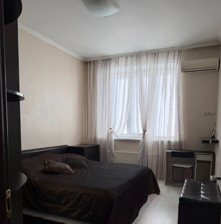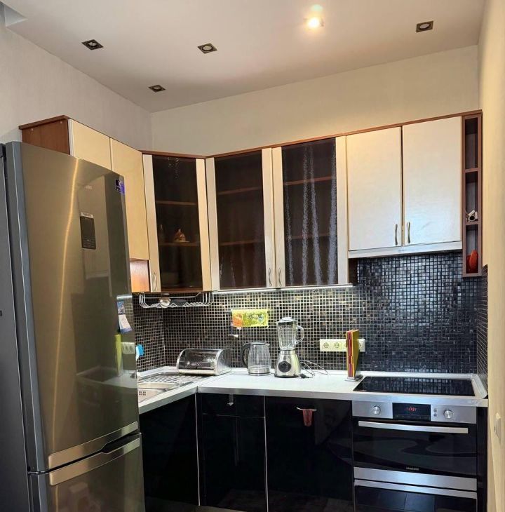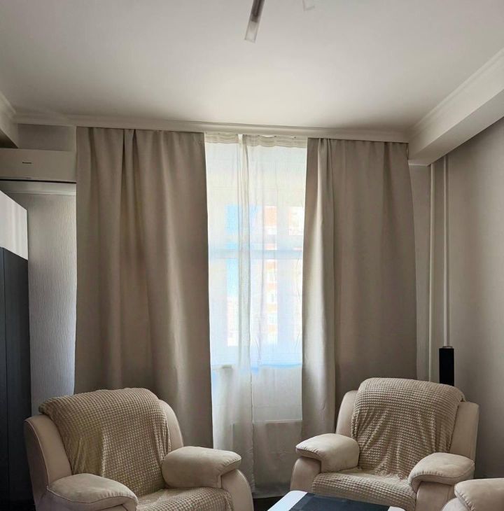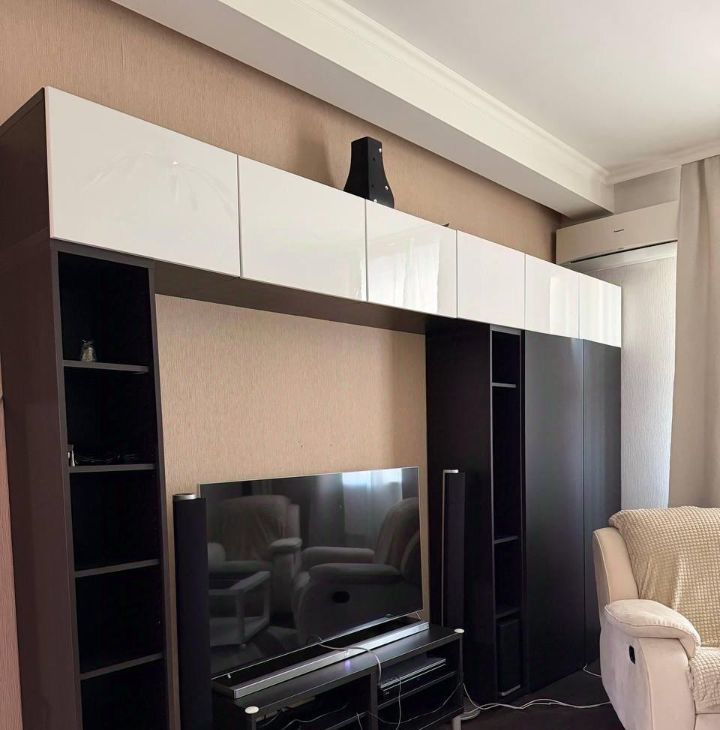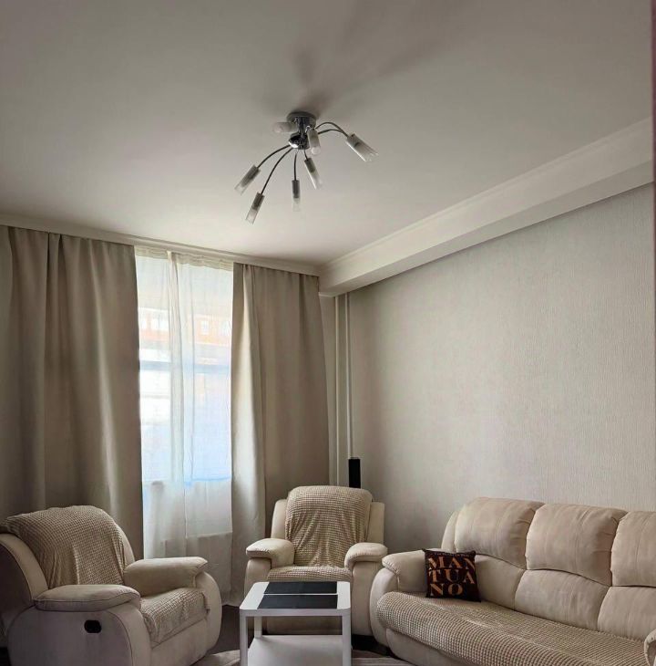 В квартире сделан косметический ремонт. Здесь есть все необходимое для комфортного проживания: мебель как в комнатах, так и на кухне. Кухня площадью 18 кв.м. оборудована посудомоечной машиной и холодильником, измельчителем и бытовой техникой. В гостиной установлен кондиционер и телевизор, а в ванной комнате вас порадует наличие ванны и стиральной машины. Удобная планировка с совмещенным санузлом и лоджией.