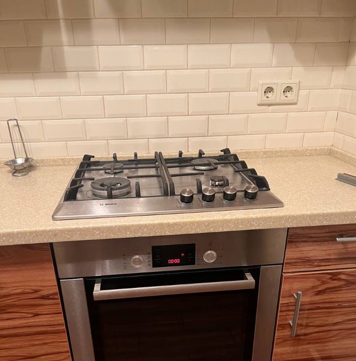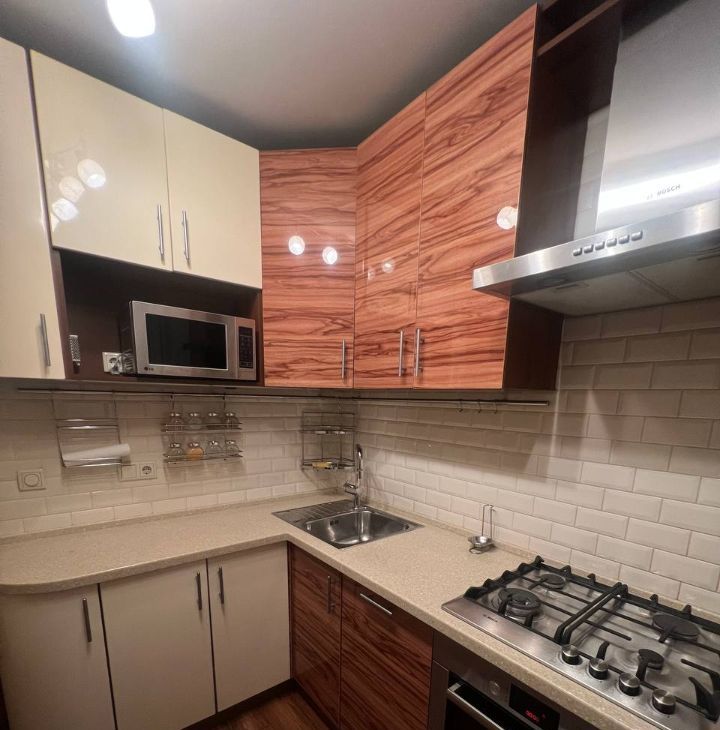 1. Стильная кухня со встроенной техникой Bosch.