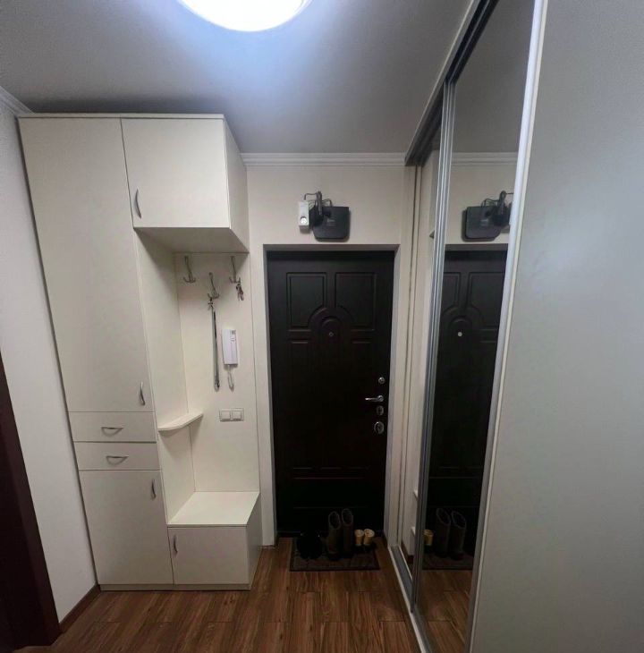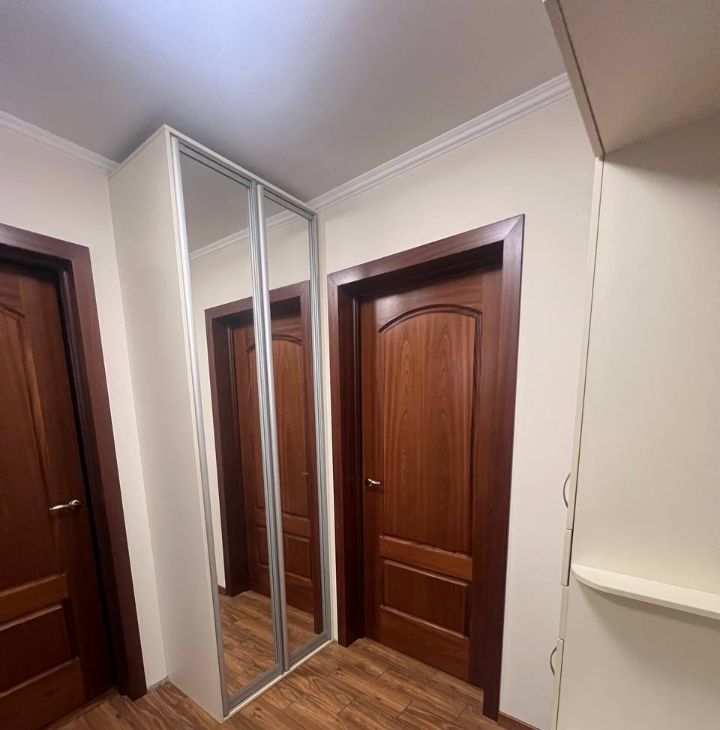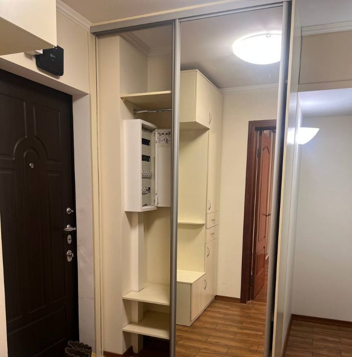 4. В большой комнате встроенный большой шкаф-купе, куда все поместится. Внутри работает подсветка шкафа, очень удобно.