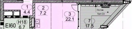 Жилое пространство освобождено от мебели, что позволяет поставить необходимые именно вам предметы интерьера и обстановки!