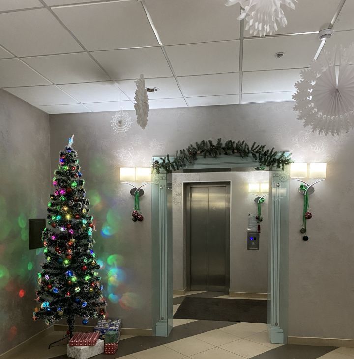 Огороженная территория , круглосуточная охрана на ресепшен, видеонаблюдение , четыре скоростных лифта , колясочная и велосипедная комнаты , нижние этажи: фитнес клуб , супермаркет , салон красоты , подземный паркинг .