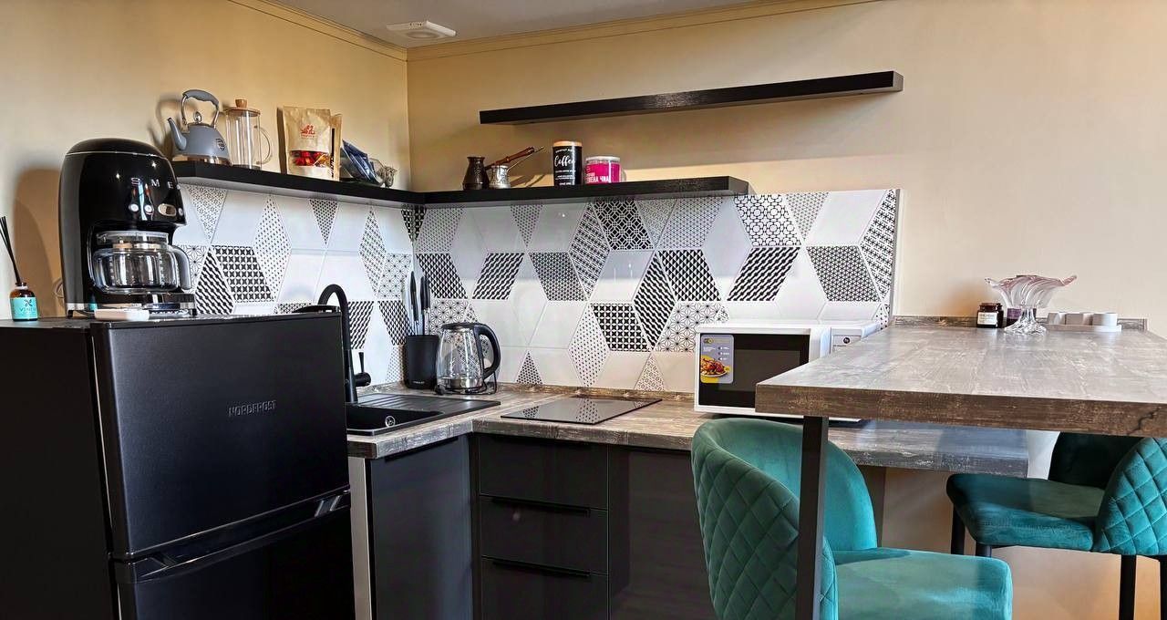 Апартаменты полностью укомплектованы для комфортного проживания. Новая техника: кофеварка Smeg, чайник, микроволновая печь, робот-пылесос, стиральная машина. Есть посуда, полотенца и постельное бельё.