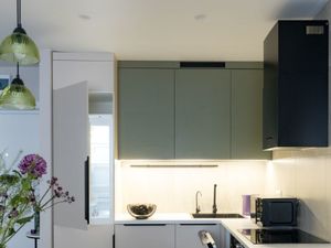 Квартира выполнена в дизайнерском стиле, что придаёт ей уникальный и современный вид. Внутри есть все необходимое для комфортного проживания: холодильник, посудомоечная и стиральная машины. Планировка квартиры включает в себя один совмещенный и один отдельный санузел, а также три балкона, из окон которых открывается панорамный вид на Москва-сити.