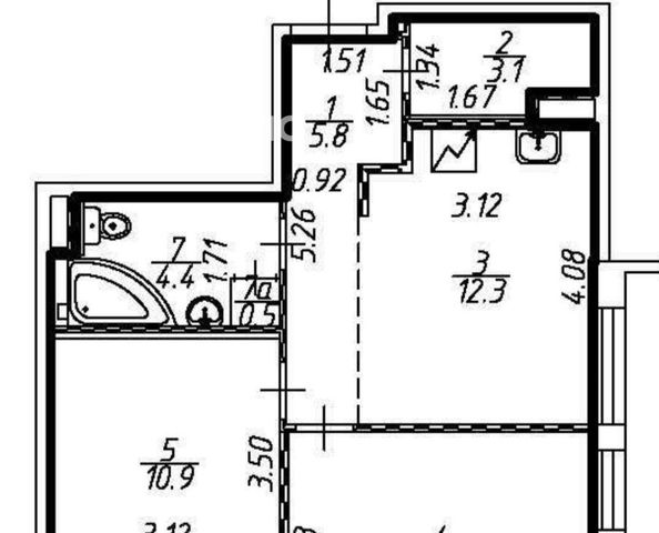 Ванная комната оснащена ванной, что даст возможность расслабиться после рабочего дня. Также имеется просторная лоджия, где можно устроить зону отдыха.