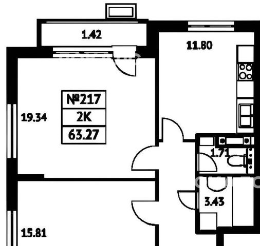 Общая площадь - 64 кв.м, изолированные комнаты 16 кв.м и 20 кв.м, кухня - 12 кв.м.