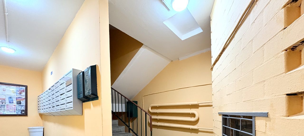 На этаже тамбур на 4 квартиры, сделан ремонт, установлена металлическая дверь.